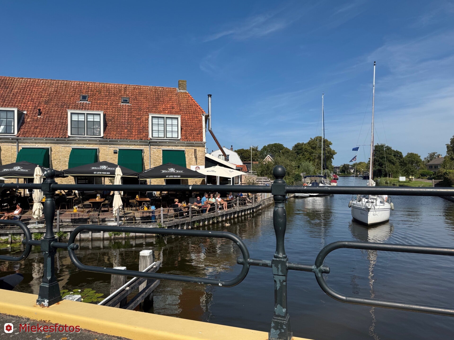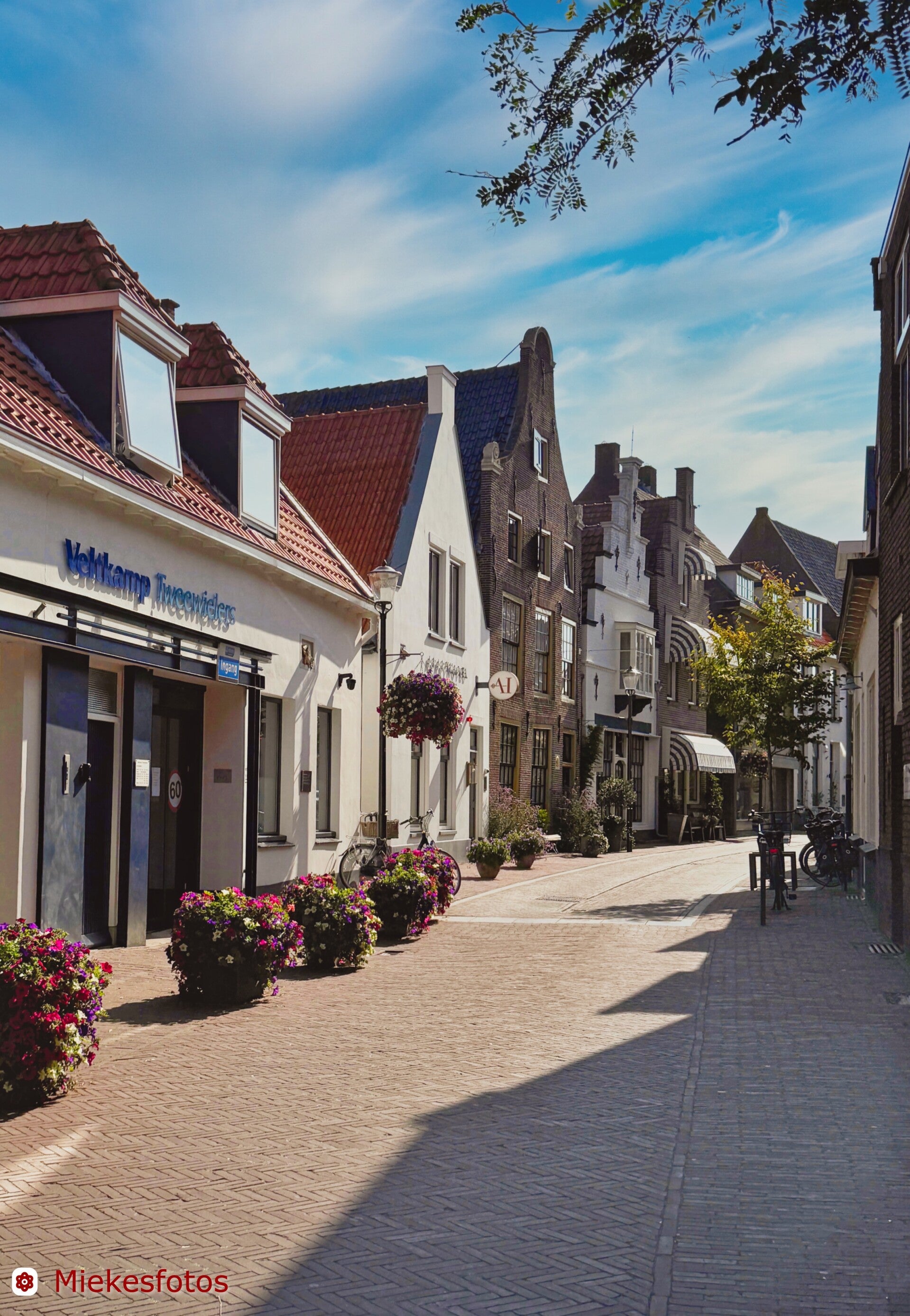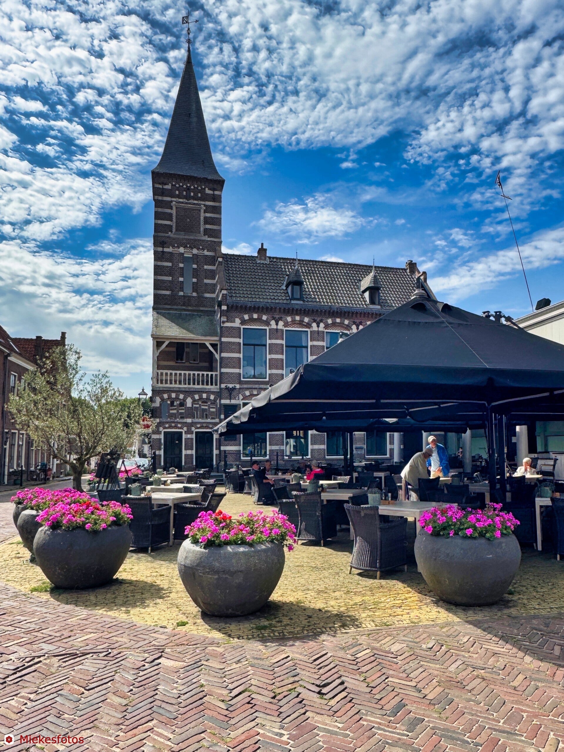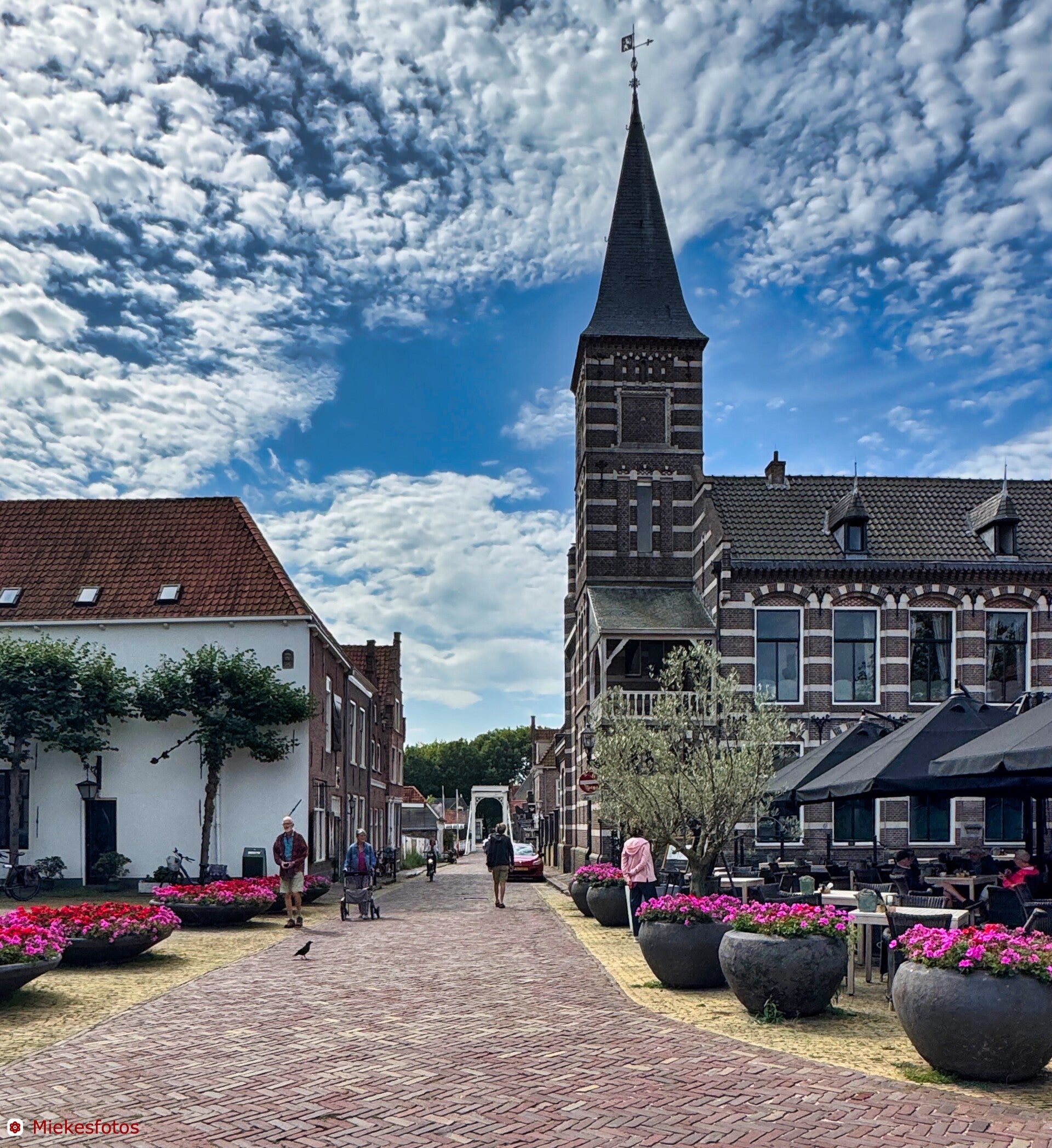 Door naar Hindelopen. Dat is wel heel leuk en gezellig en beslist de moeite waard. Aan alle bruggetjes hangen bloembakken en dat maakt het heel vrolijk.