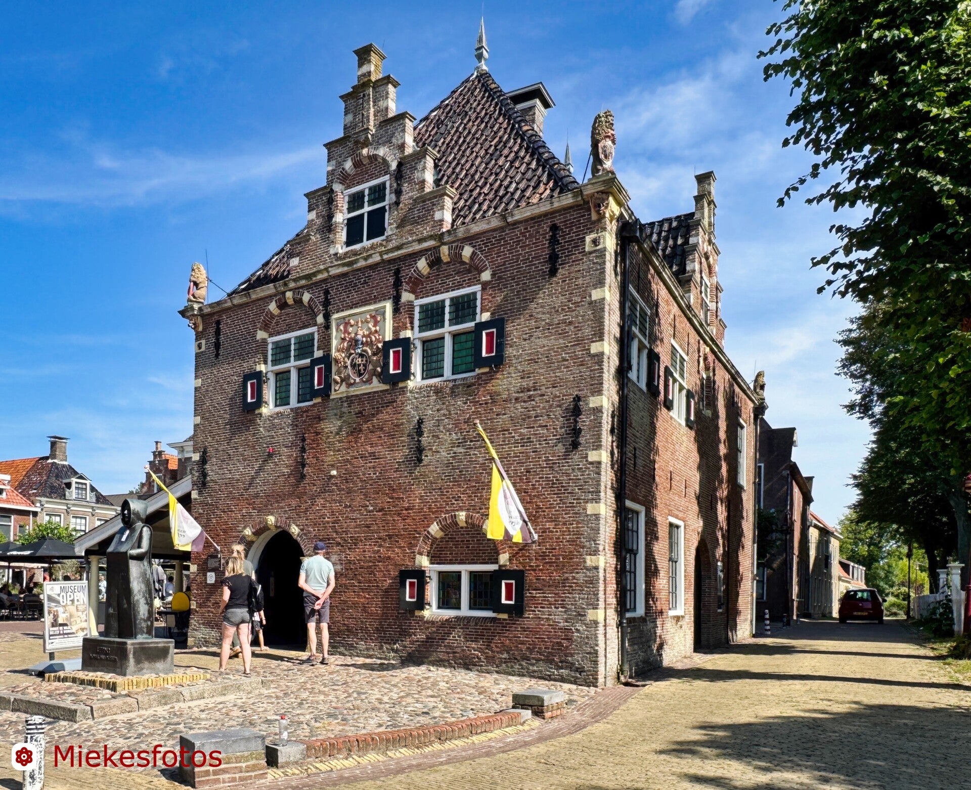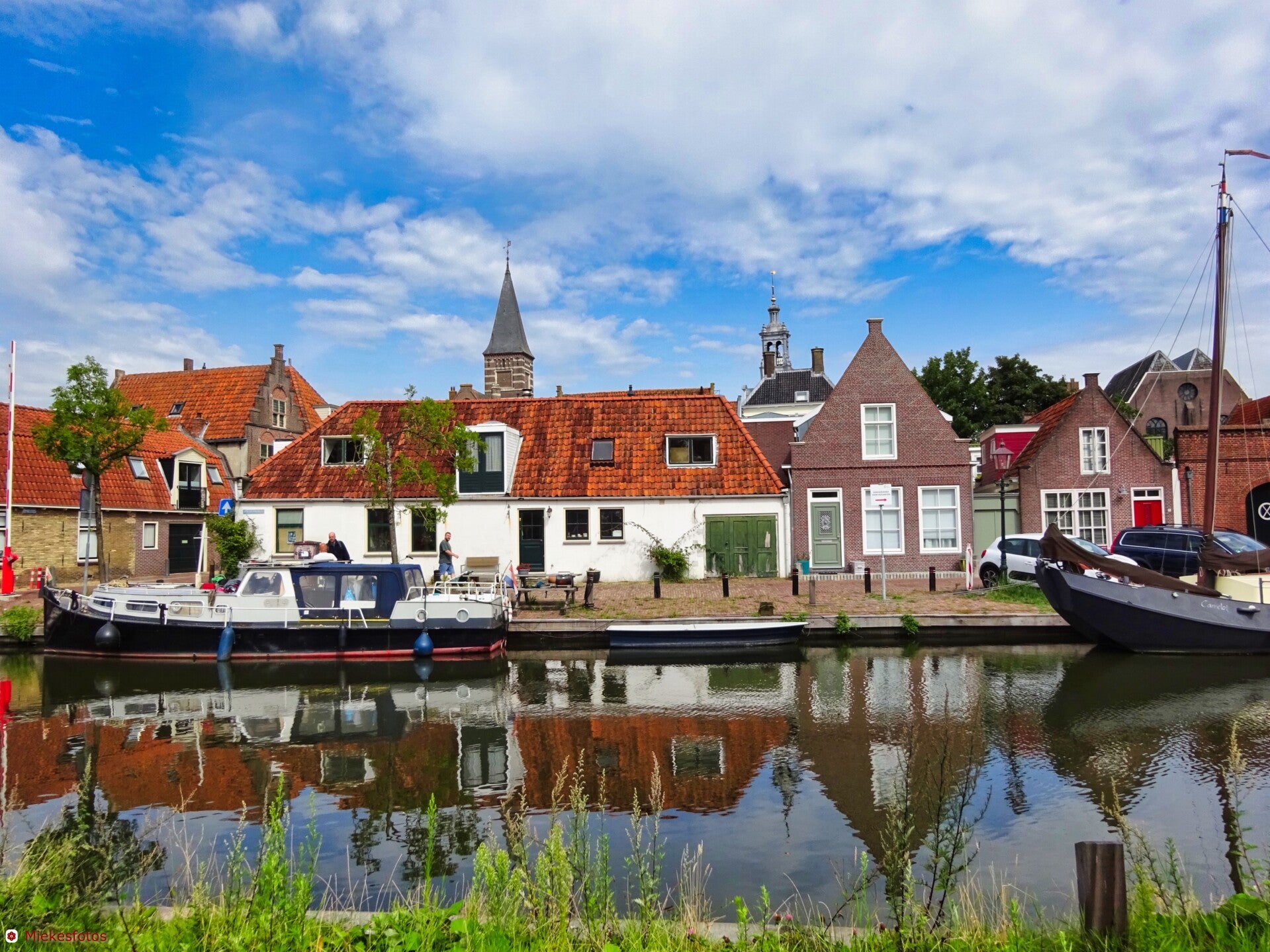 Maar eerst Medemblik goed bekijken. Het is de oudste stad van West-Friesland die in 1289 stadsrechten van graaf Floris V van Holland kreeg. Het is een prachtige plaats met veel bezienswaardigs. Ik koop een broodje paling, bramen en een flesje fruitsap. Ik zit op een bankje met uitzicht op de haven als een mevrouw vlak voor mijn neus komt te vallen. Ik schiet haar te hulp en gelukkig valt het mee. Wat helaas niet meeviel was dat mijn broodje paling in het zand was gevallen. Zand schuurt de maag, maar het belandde toch in de vuilnisbak. Je moet nooit een gevallen vrouw helpen als je zit te eten.
