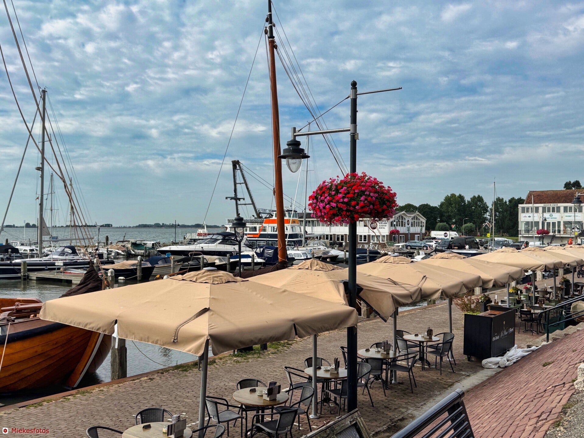 In Enkhuizen eerst gekeken naar de vertrektijd van de boot van Enkhuizen naar Stavoren, want ik vernam gisteren van Ruud dat de afsluitdijk is afgesloten voor motoren en scooters. Ik moet de reis dus iets aanpassen.