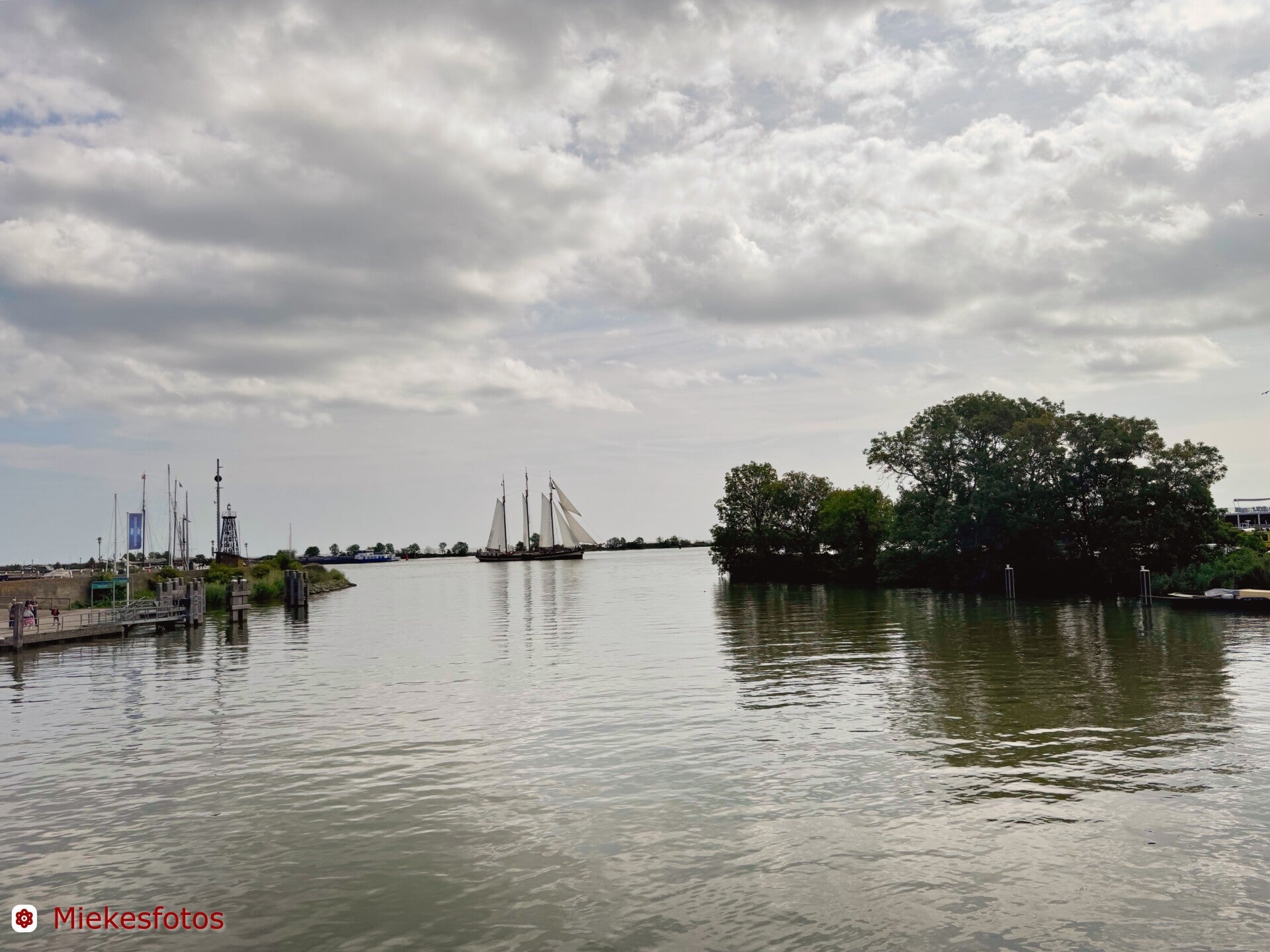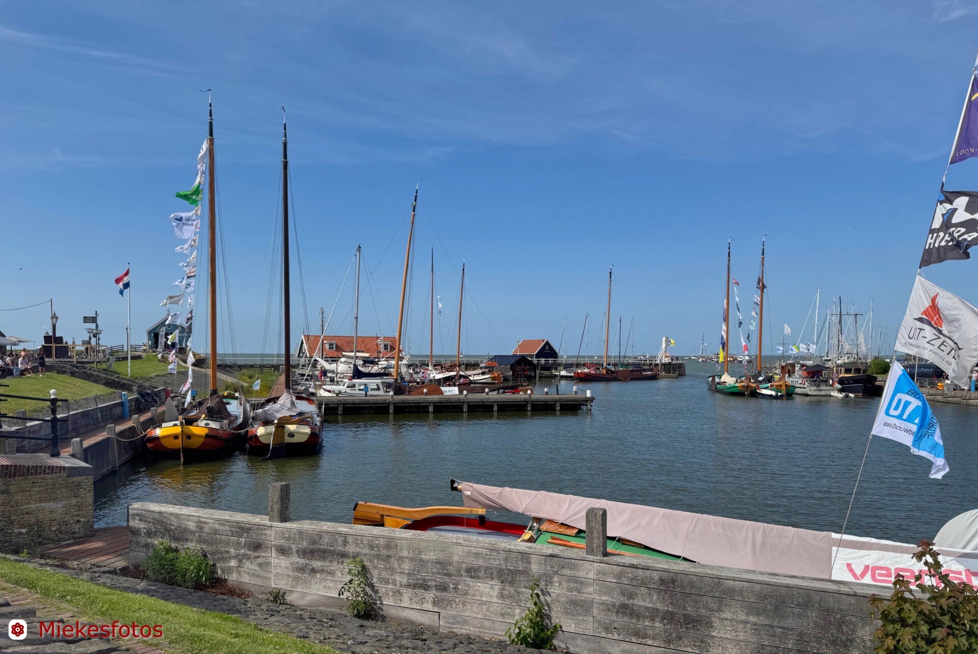 Eenmaal Amersfoort uit richting Bunschoten, is het direct landelijk met koeien in de wei. Dat duurt maar kort, want Bunschoten ligt tegenwoordig bijna tegen Amersfoort aan. In het centrum van Bunschoten wat foto’s gemaakt, waaronder de prachtig gelegen molen. Twee straten verder ligt Spakenburg. Omdat het de eerste woensdag van augustus is, (dan zijn er de Spakenburgse dagen met braderie en veel klederdrachten) kan ik nu niet in het centrum komen. De buitenhaven is wel bereikbaar. Daar begint het rondje IJsselmeer echt, want ik zie het water recht voor me liggen.