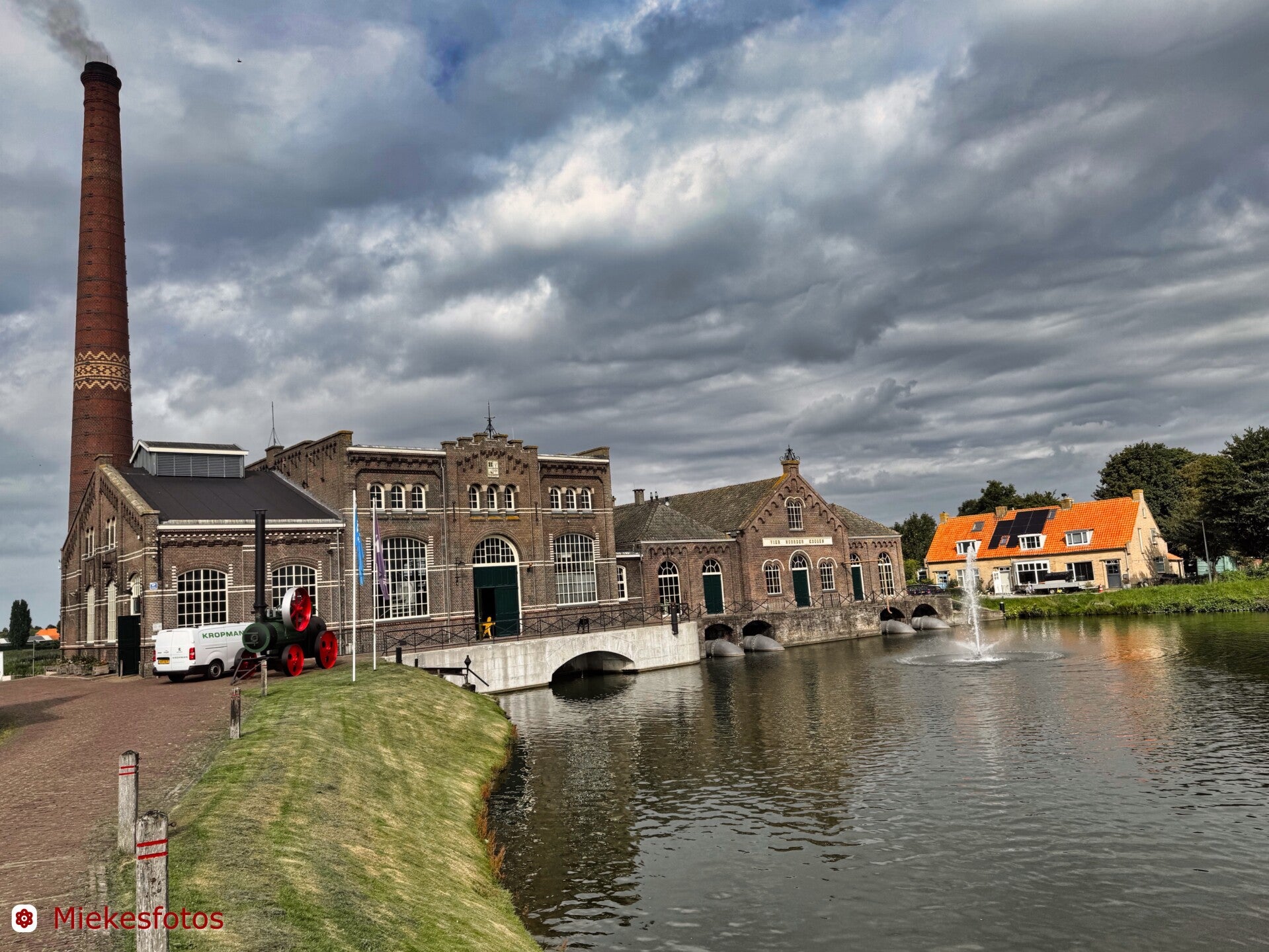 Naar Eemdijk waar een soort rommelmarkt buiten staat opgesteld. Dan de veerpont richting Eemnes. Altijd leuk op zo’n pontje. Daarna door de polder naar Eemnes. Aardig plaatsje waar een viskar staat. Broodje haring gekocht voor later en verder naar Laren.